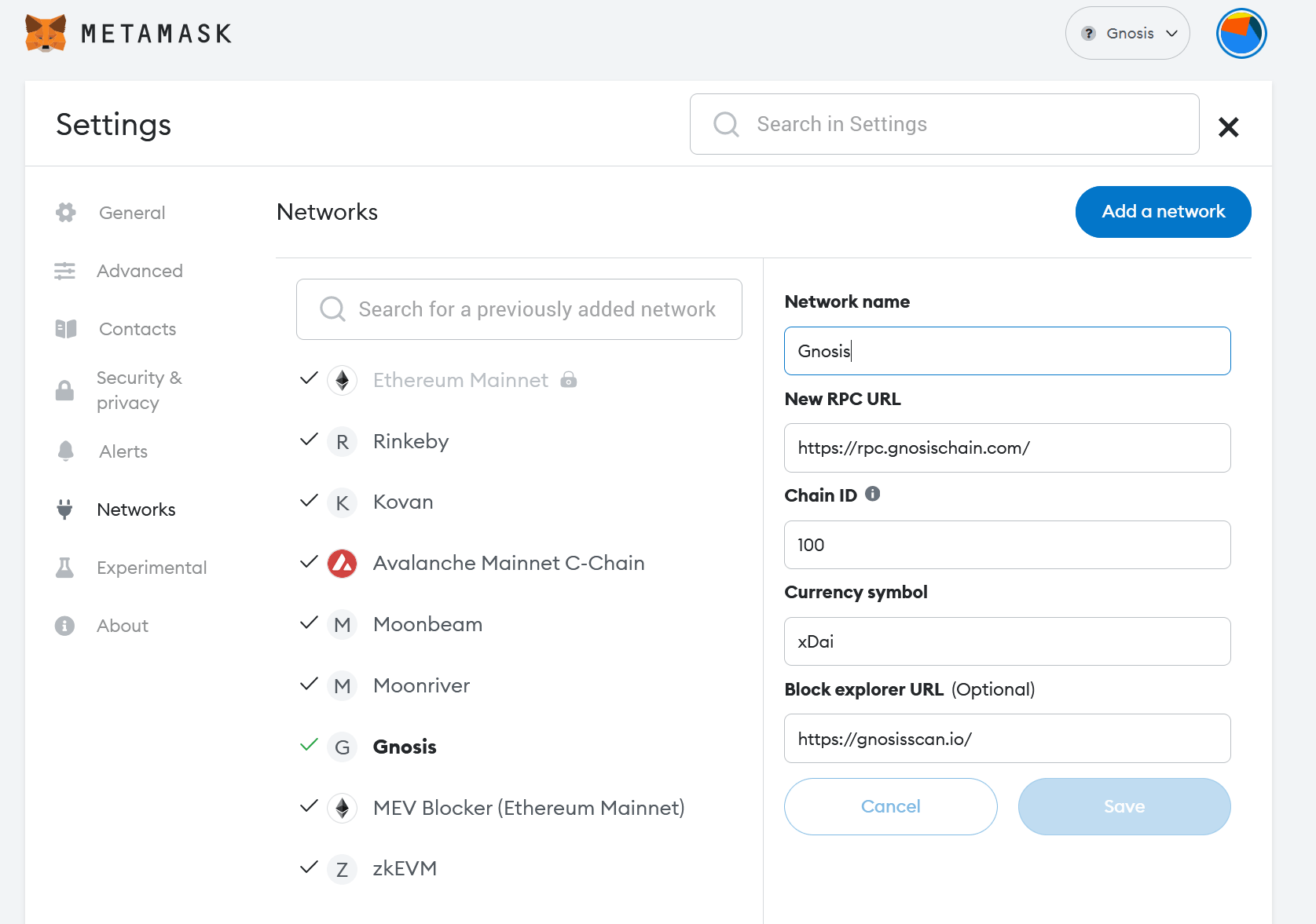 Block Explorer URL (Optional):https://blockscout.com/xdai/mainnet